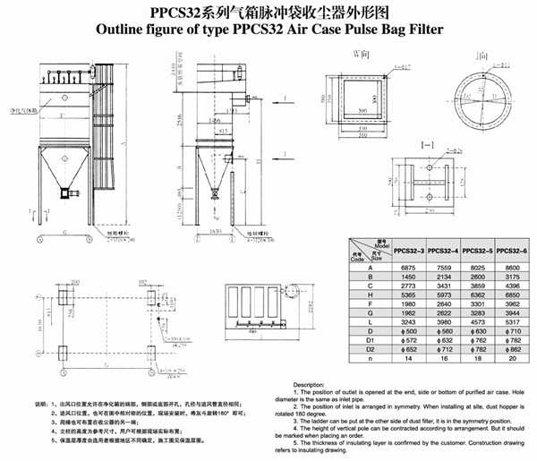 5、收塵器根據(jù)不同規(guī)格,可以是整機發(fā)運,或以解體形式發(fā)運,其基礎(chǔ)設(shè)計由選用者負責(zé)。