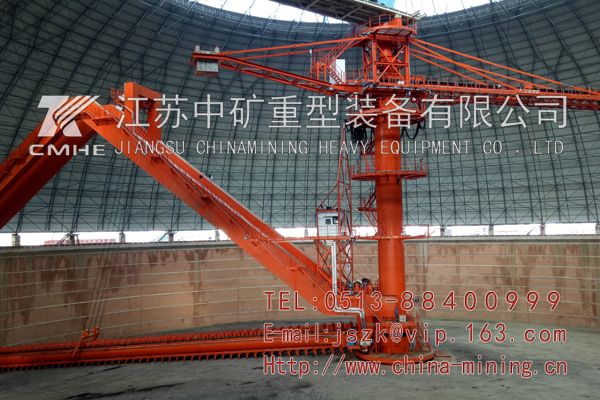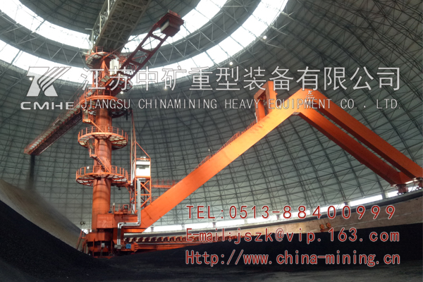 圓形料場堆取料機(jī)是懸臂堆料機(jī)與刮板取料機(jī)集于一體設(shè)備,是一種大型、環(huán)保、連續(xù)、 高效的散料裝卸機(jī)械,實(shí)用于碼頭、鋼鐵廠、水泥廠、大型火力發(fā)電廠和礦山等,可以裝卸鐵礦石(砂)、煤炭、砂子、石灰石、水泥等,圓形堆取料機(jī)被半球形網(wǎng)架外殼所籠罩,堆取料作業(yè)時(shí)集中于定心旋轉(zhuǎn)的回轉(zhuǎn)范圍內(nèi),不受臺風(fēng)等惡劣天氣的影響,同時(shí)產(chǎn)生的揚(yáng)塵范圍小,又被拘囿在固定的區(qū)域內(nèi),所以,它很好地解決了常規(guī)的敞開式條形煤場堆取料機(jī)作業(yè)時(shí)所產(chǎn)生的大量揚(yáng)塵對周邊環(huán)境造成的大范圍污染,既美觀又環(huán)保,綜合效益高,具備儲料量大、占地面積小、場地利用率高、安全可靠性高、環(huán)保效益好等優(yōu)點(diǎn)。取料和堆料作業(yè)時(shí)具備兩個(gè)層次分明的堆料回轉(zhuǎn)機(jī)構(gòu)和取料回轉(zhuǎn)機(jī)構(gòu),使堆料機(jī)和取料機(jī)形成兩套互不干涉、相對獨(dú)立的運(yùn)行系統(tǒng),實(shí)現(xiàn)同時(shí)進(jìn)行堆料和取料作業(yè)。我司目前有圓形堆取料機(jī)軌道直45m-120m各種規(guī)格。