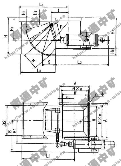 扇形閘門(mén)廣泛用于建材、冶金、礦山、化工、電力等行業(yè),是各類(lèi)落料系統(tǒng)的卸料控制裝置。根據(jù)建材行業(yè)的特殊需要,用作水泥熟料庫(kù)除塵設(shè)備的卸料裝置。本扇形閥門(mén)在出料口處設(shè)置了防塵罩,避免了灰塵飛揚(yáng);采用電液推桿作動(dòng)力源,取代氣缸傳動(dòng),節(jié)約了工程投資成本;扇形閥門(mén)閥體采用階臺(tái)結(jié)構(gòu),減少了料流沖擊;扇形閥門(mén)閥體關(guān)鍵部位鋪設(shè)柵欄結(jié)構(gòu)的耐磨襯板,減少了襯板直接磨損。