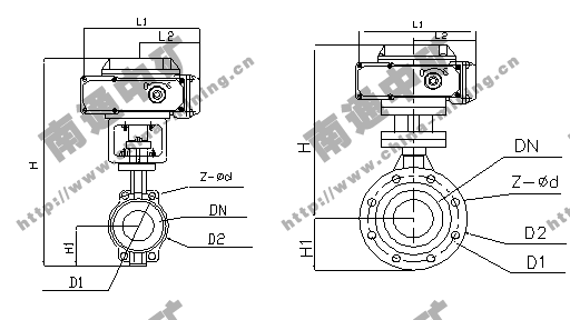 公稱通徑DN | L閥厚度 | H | H1 | D1 | Z-фd | D2 | L1 |