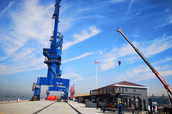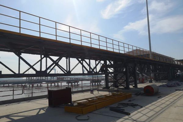 我公司于2018年12月與南通通常港務(wù)有限公司簽訂港口散裝物料物流中轉(zhuǎn)項(xiàng)目設(shè)備一批,2019年3月15日我公司安裝人員已正式進(jìn)入現(xiàn)場(chǎng)進(jìn)行安裝,為保證業(yè)主單位的生產(chǎn)進(jìn)度及港口卸船機(jī)與帶式輸送機(jī)的協(xié)同生產(chǎn),我公司安裝人員在現(xiàn)場(chǎng)加班加點(diǎn),目前現(xiàn)場(chǎng)已初具規(guī)模。