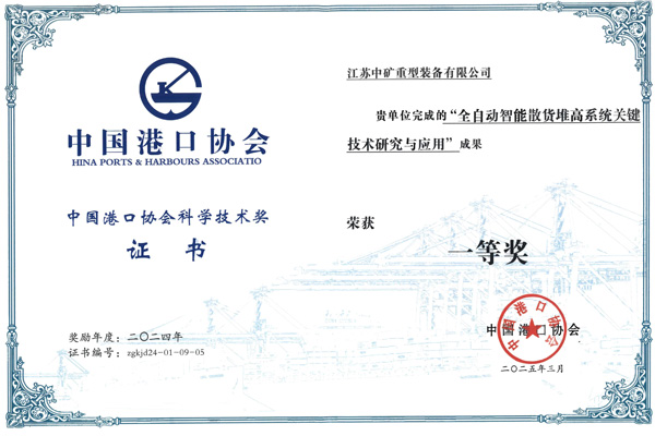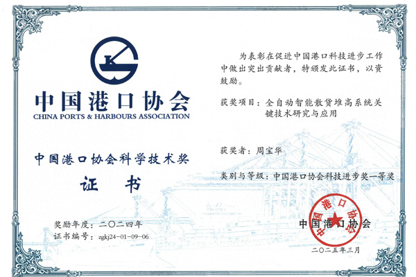 熱烈祝賀我公司“移動(dòng)式堆料裝船一體機(jī)”榮獲中國港口協(xié)會(huì)科技進(jìn)步獎(jiǎng)一等獎(jiǎng)