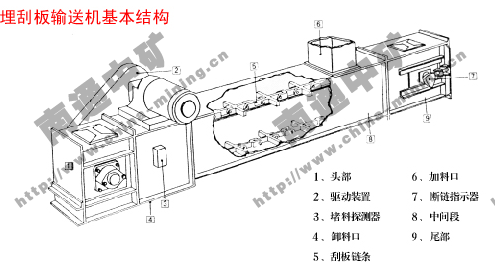 埋刮板輸送機結(jié)構(gòu)簡單、重量輕、體積小,耐高溫、密封性強、安裝維修方便。它的工藝布置靈活,可以多點卸料及實現(xiàn)定量輸送,輸送距離達(dá)80m以上。由于殼體是封閉的,在輸送有毒、易飛揚、易爆及高溫物料時,對改善工人的操作條件和防止環(huán)境污染等方面都有優(yōu)勢。目前埋刮板輸送機已廣泛用于水泥、冶金、交通、建材、化工、糧食、電力等行業(yè)。
